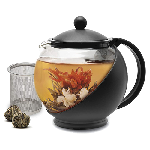 - Enjoy watching flowers unfurl or insert the included stainless mesh infuser for loose leaf tea brewing